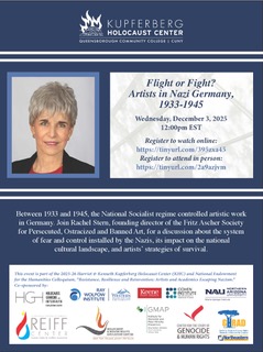 This event is part of the 2025-26 KHC and National Endowment for the Humanities Colloquium, “Resistance, Resilience and Reinvention: Artists and Academics Escaping Nazism.” It is co-sponsored by the Holocaust & Human Rights Education Center in White Plains; the Center for Genocide and Human Rights Research in Africa and the Diaspora at Northeastern Illinois University; the Center for the Study of Genocide and Human Rights at Rutgers University; the Holocaust, Genocide & Interfaith Education Center at Manhattan University; the Ray Wolpow Institute for the Study of the Holocaust, Genocide, and Crimes Against Humanity at Western Washington University; the Reiff Center for Human Rights & Conflict Resolution at Christopher Newport University; the Institute for Genocide and Mass Atrocity Prevention at Binghamton University; the Cohen Institute for Holocaust & Genocide Studies at Keene State College; and the Martin-Springer Institute at Northern Arizona University.