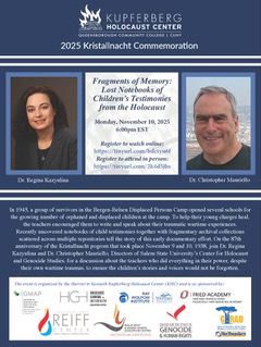 Holocaust Memory/Kristallnacht Commemoration (In Person & Online) Fragments of Memory: Lost Notebooks of Children’s Testimonies from the Holocaust