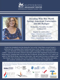 Despite the triumphalist tale that during the Nazi era the United States rescued Europe’s intellectual elite, including Albert Einstein and Enrico Fermi, Hannah Arendt and Herbert Marcuse, thousands of European scholars sought to immigrate to the United States and couldn’t. American universities refused to hire them and the State Department erected barrier to letting them in, meaning many lost not only their livelihoods, but also their lives. Dr. Laurel Leff, author of Well Worth Saving: American Universities’ Life and Death Decisions on Refugees from Nazi Europe (Yale University Press, 2019), will introduce a few of those scholars and explain how academic institutions in the United States undertook these fraught choices.