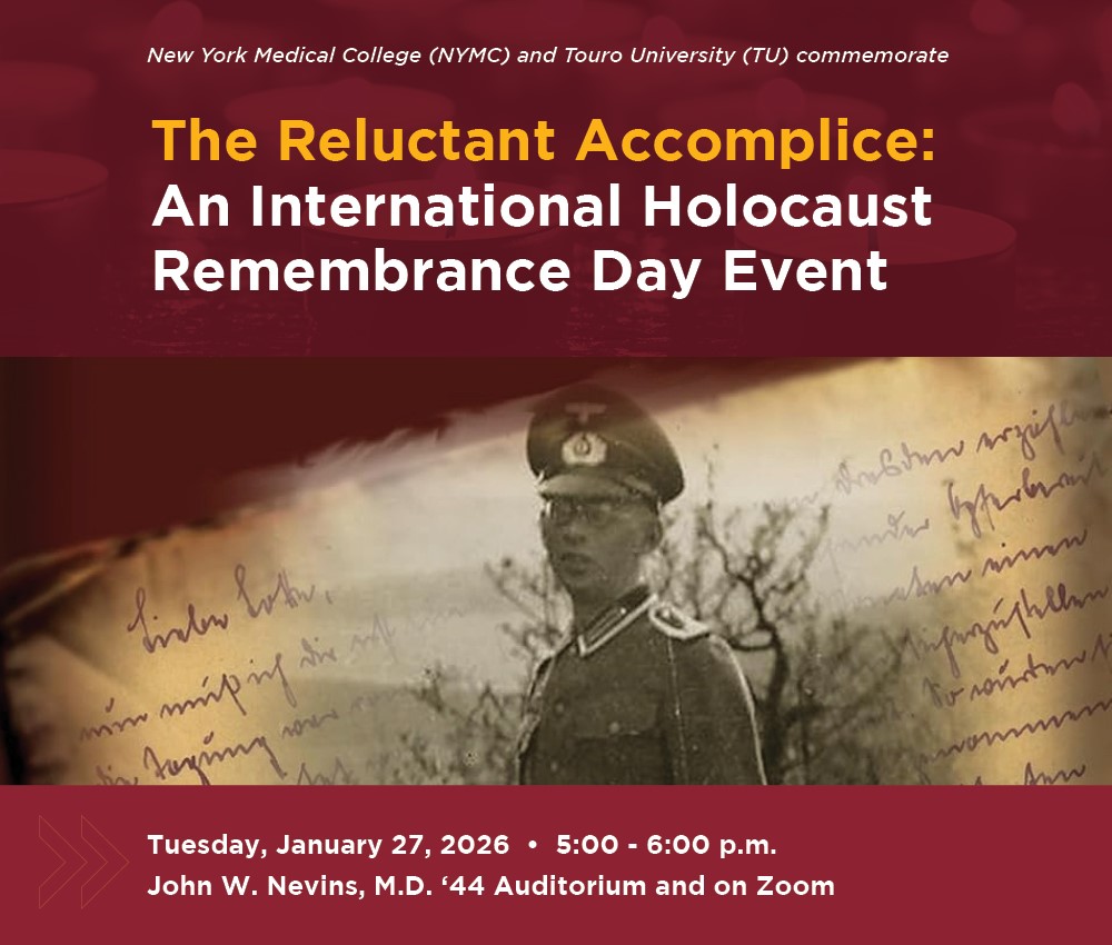 The Reluctant Accomplice: An International Holocaust Remembrance Day Event Jan 27, 2026 5:00PM—6:00PMLocationNew York Medical College John Nevins Auditorium, 40 Sunshine Cottage Road Valhalla, NY 10595 USCost FreeEvent Contact Edward Halperin | Email Register