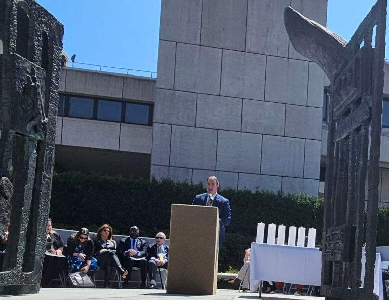 Holocaust Remembrance Day Commemoration Draws Large Crowd, Features Holocaust Survivor Speaker and Remarks by Congressman George Latimer