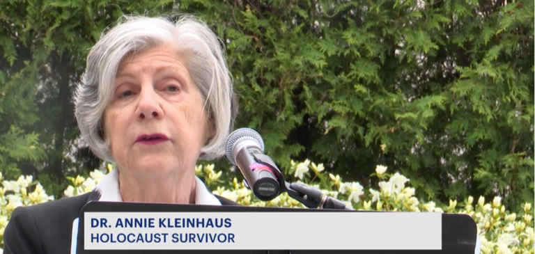 In 2024, the Annual Countywide Yom Hashoah Commemoration Keeping the Memory Alive was held on Tuesday, April 18th. A crowd estimated at close to 300 people attended the event that featured a keynote presentation by Holocaust Survivor Annie Kleinhaus.