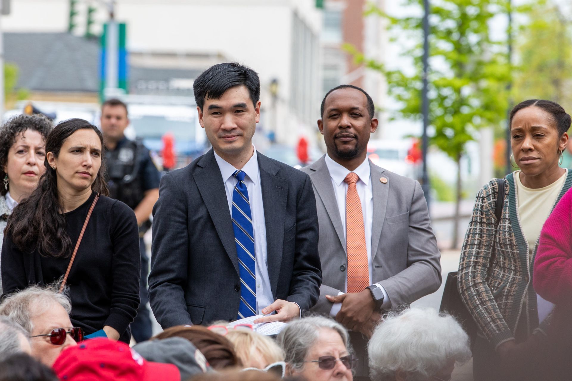 The program began with the Opening of the Gates by Hillels of Westchester students, and a Sounding of the Shofar by Mitchell Ostrove, Board member, HHREC and WJC. Following the opening there was a Procession of Rescued Torahs from synagogues across Westchester and neighboring counties. Locations of origin were read by Cantor Robin Joseph, President of Kol Hazzanim, Westchester Community of Cantors and Cantor at Temple Beth Shalom of Hastings. A welcome message was given by Michael Gyory, Chairman HHREC, followed by an Invocation by Rev. Doris Dalton, Chair of the Westchester County Human Rights Commission, and remarks by Westchester County Executive George Latimer and U.S. Congressman Michael Lawler, WJC President William Schrag, and Rabbi Lester Bronstein from Bet Am Shalom Synagogue. The program concluded with a singing performance in English, German and Hebrew by the Children’s Choir of German International School New York.