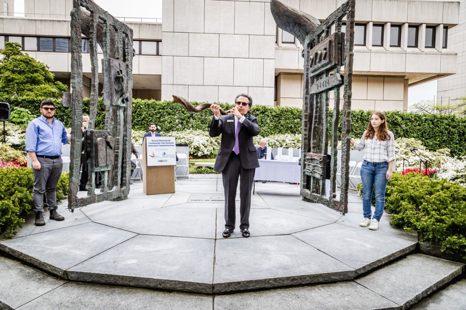The Garden of Remembrance is located in the front of the Michaelian Office Building at 148 Martine Avenue in White Plains. This memorial site was created by the Holocaust & Human Rights Education Center (formerly known as the Westchester Holocaust Education Center, and the Westchester Holocaust Commission).