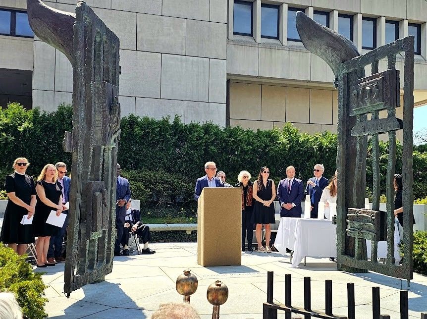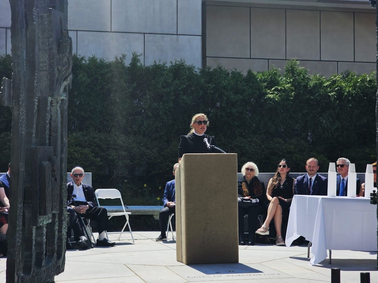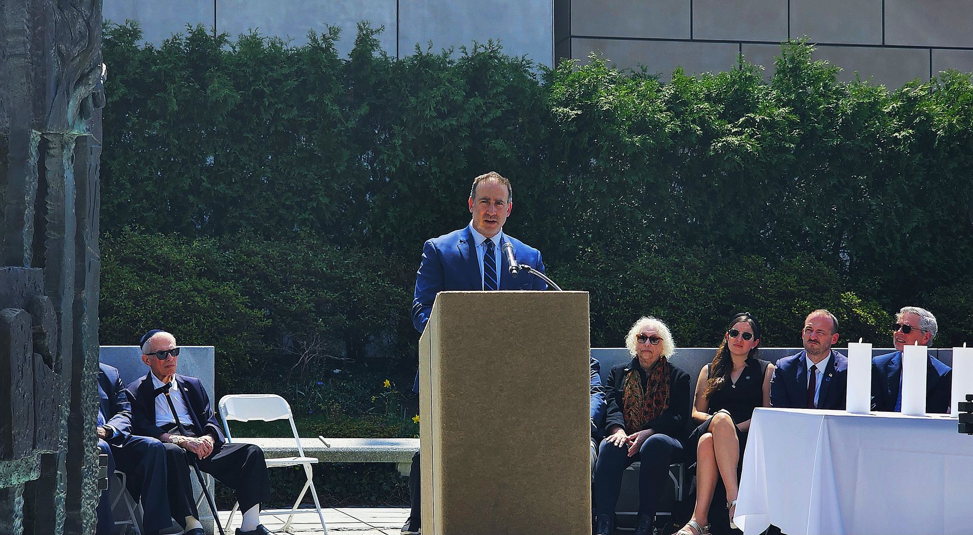 Following Gosler, the Holocaust Kaddish was offered by Rabbi Leora Frankel and Rabbi Adam Baldachin, Shaarei Tikvah, and the Music Selection was led by Cantor Lauren Phillips Fogelman, Temple Beth Abraham. The Mayor of White Plains Justin Brasch then shared comments about the importance of this annual event, and the program closed with remarks by Michael Mittelman, Westchester Jewish Council Board President.